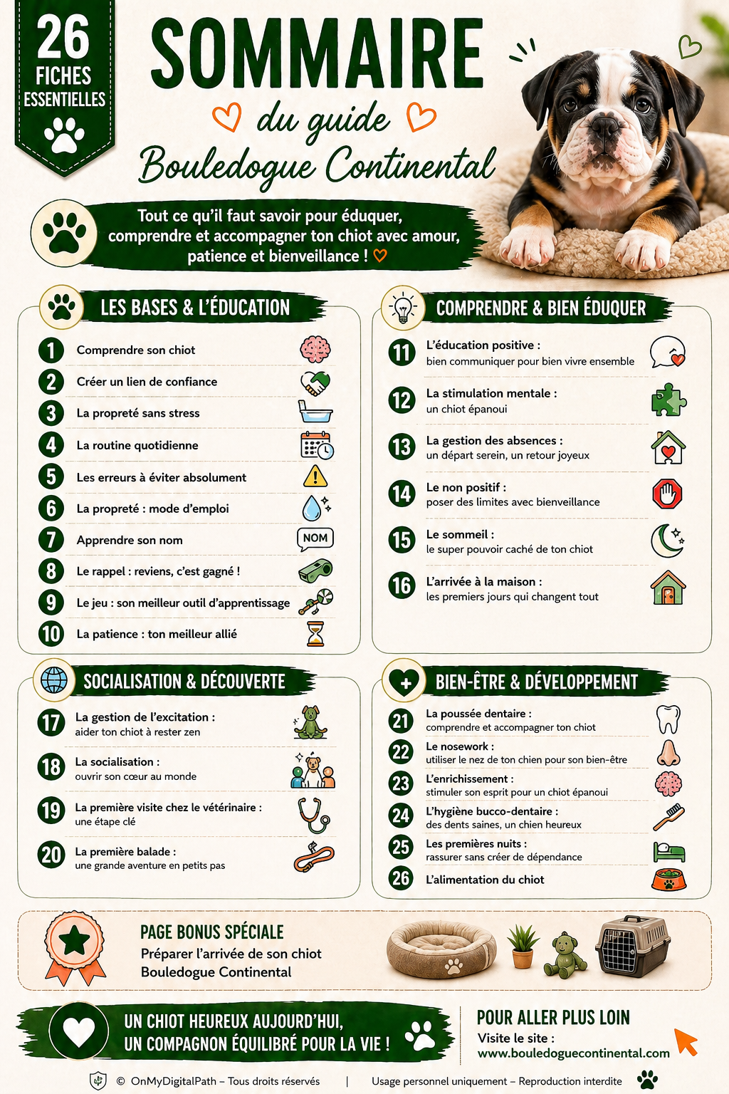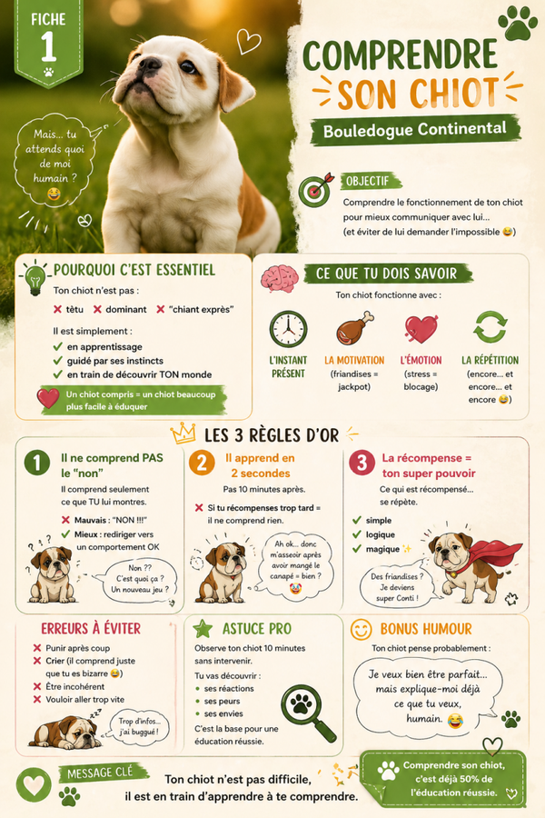 Guide Bouledogue Continental : 26 Fiches pour un Chiot Épanoui (Ebook PDF)